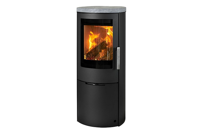 De Mido Speksteen Top een van de prachtige modellen houtkachels van Jydepejsen. Dit model heeft een slanke en elegante uitstraling. Door de indrukwekkende eenvoud, de unieke details en het gedegen handwerk oogt het design tijdloos. De kachel is voorzien van grote gietijzeren deuren, waarachter zich de brandkamer en aslade bevinden. Door het grote, gebogen glas heb je een imposant zicht op de verbrandingskamer, zodat u maximaal van het vuur kunt genieten.
