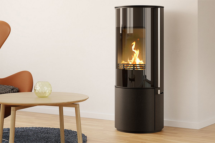 De kachel is ook verkrijgbaar met een onzichtbare draaivoet, die 360° kan draaien.